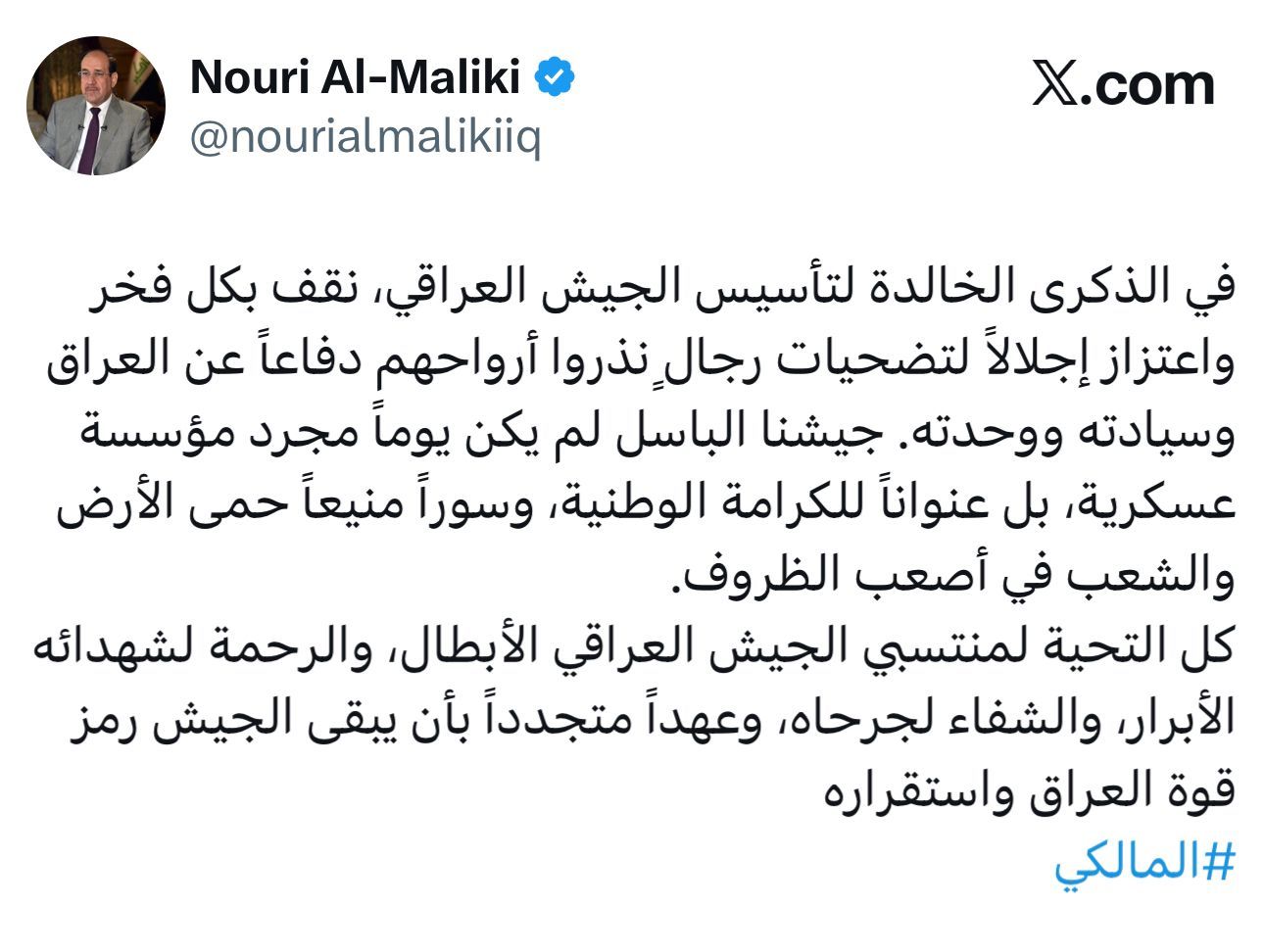 رئيس ائتلاف دولة القانون السيد نوري المالكي يهنئ الشرطة العراقية في عيدهم